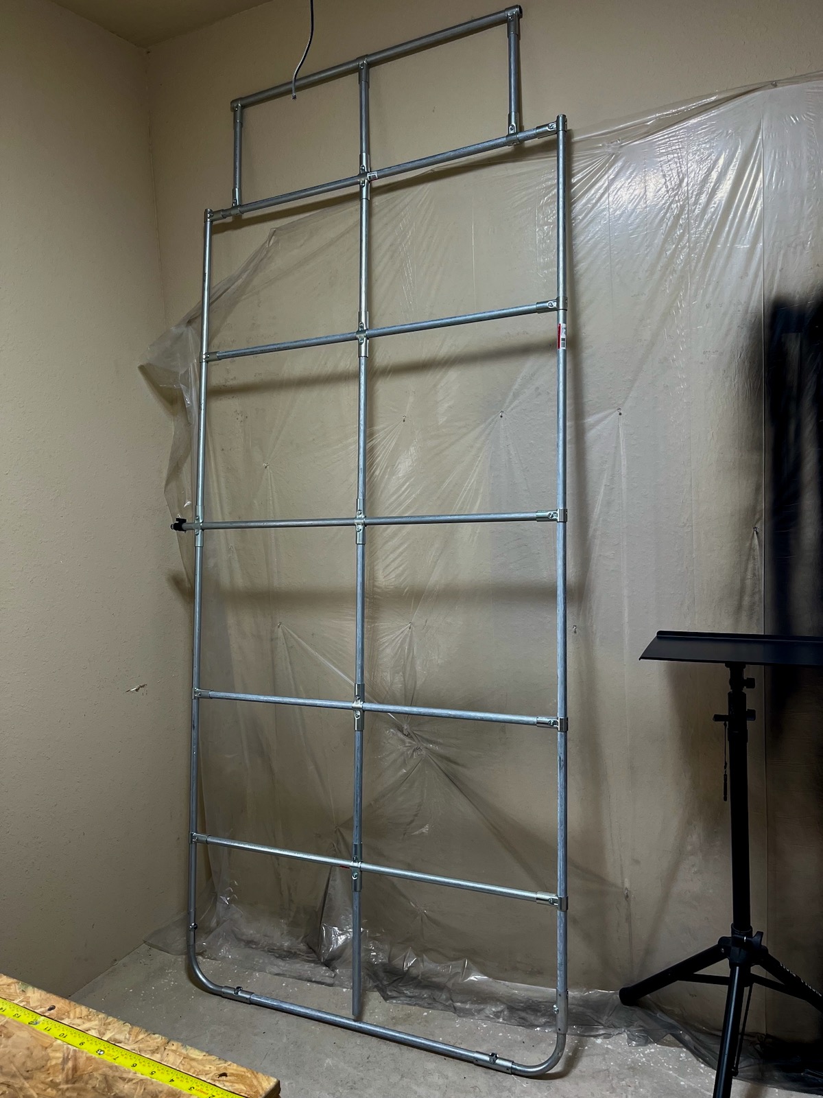 Somewhere I came across the Makerpipe products. They sell a series of connectors to create structures from common EMT conduit. I planned out and measured a full-length platform and ordered supplies.
