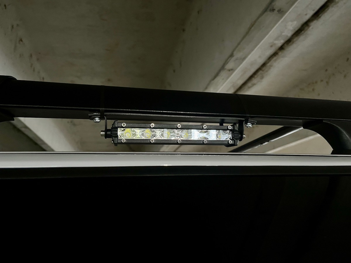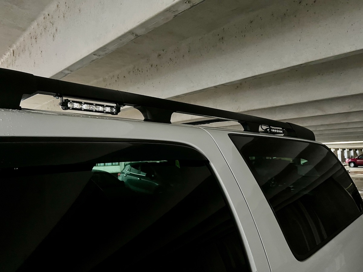 With the rack mounted, I had to wire up those corner lights. I also decided those gaps between the truck roof and Z71 rack were large enough I could sneak some skinny LED lights in. They'd be in a protected spot and help with our goal of camping in rustic forest spots, away from campgrounds.