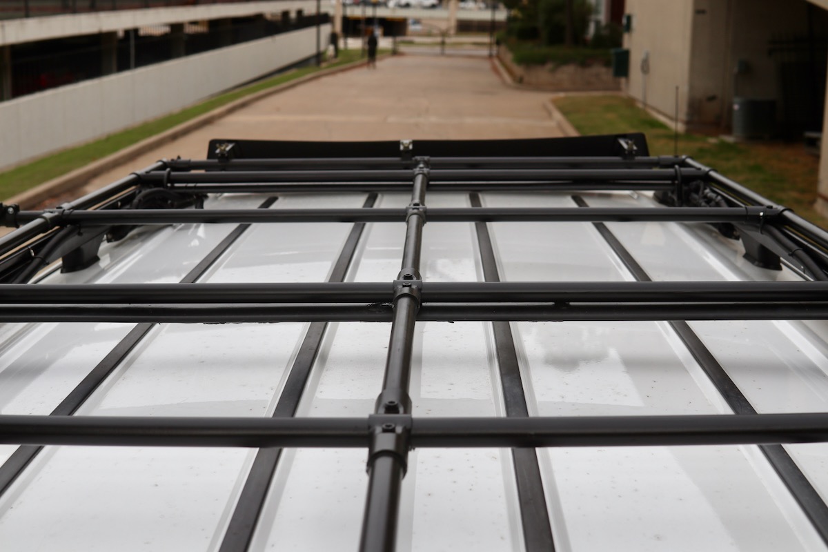 I'd planned to mount solar panels in that space. But between planning to use a DC-DC charger and the price of folding "suitcase" or "blanket" solar panels coming down, I decided I could do without fixed solar on the roof.